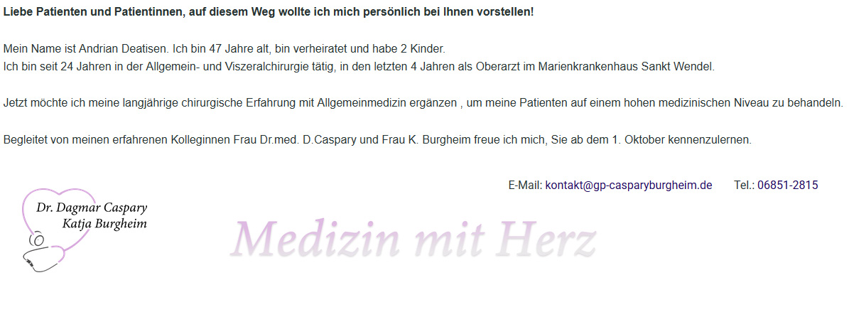 Ausgestattet mit reichlich Berufserfahrung und einer Fülle an Kompetenz, Empathie und Herzenswärme wird er uns in Zukunft unterstützen.